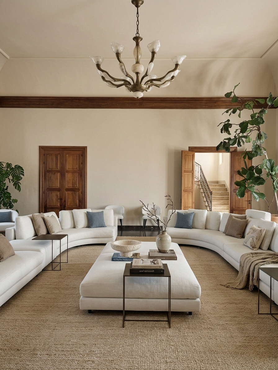 Materiali naturali, palette essenziali e proporzioni armoniose definiscono spazi luminosi e senza tempo, profondamente radicati nella cultura mediterranea.